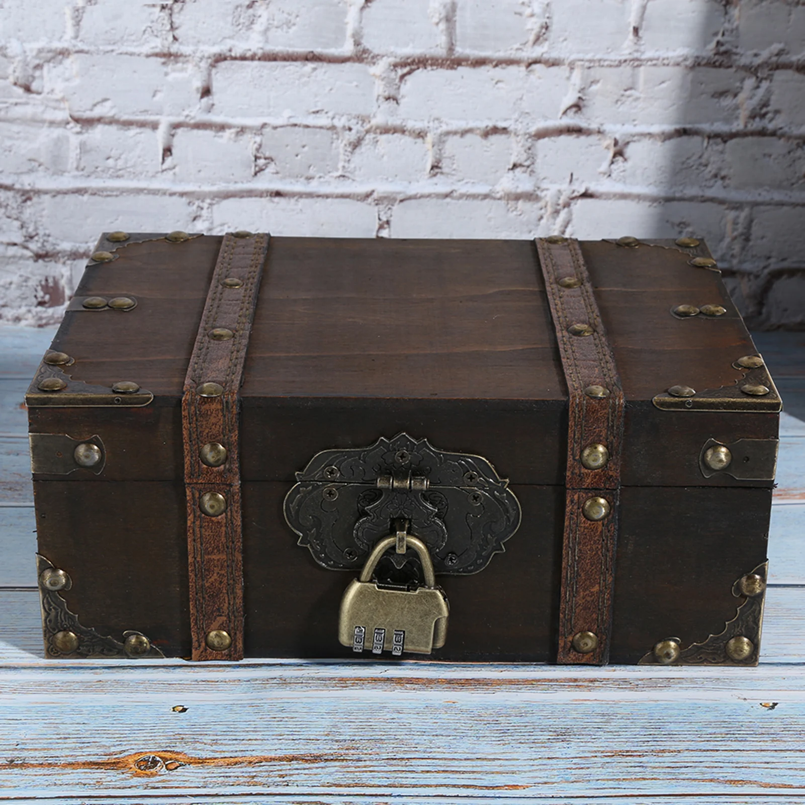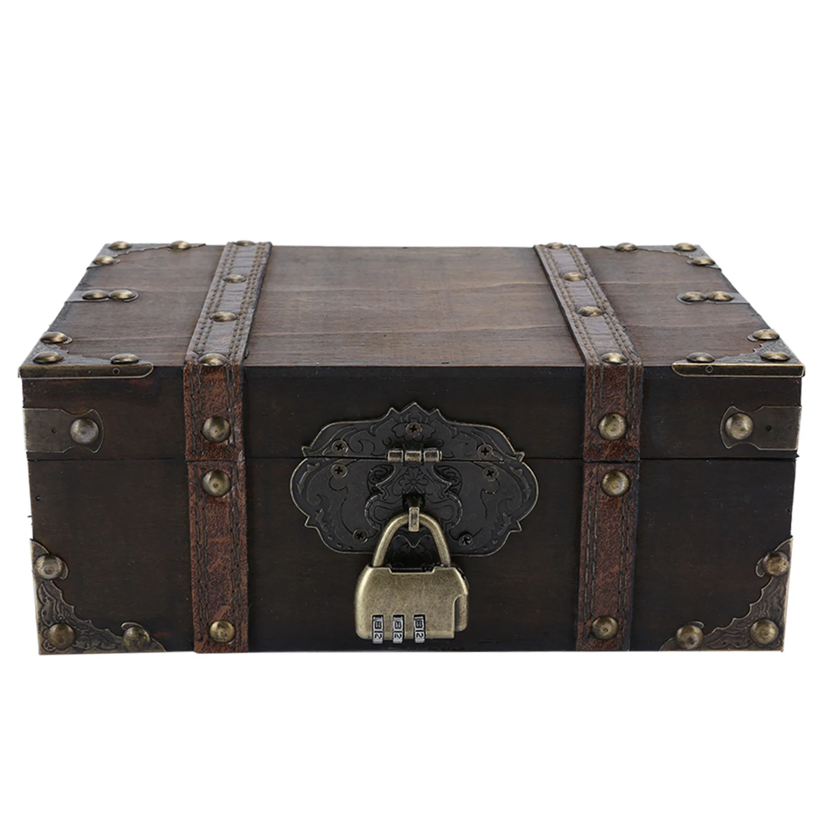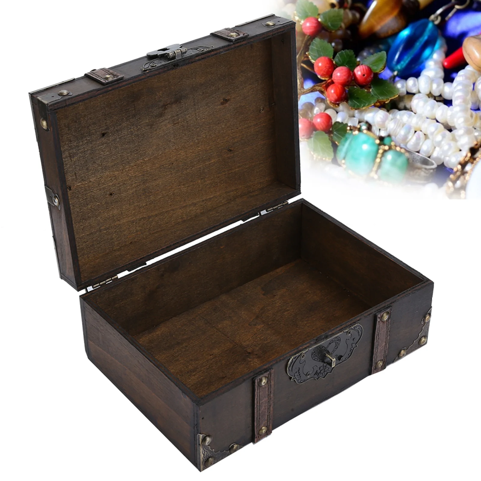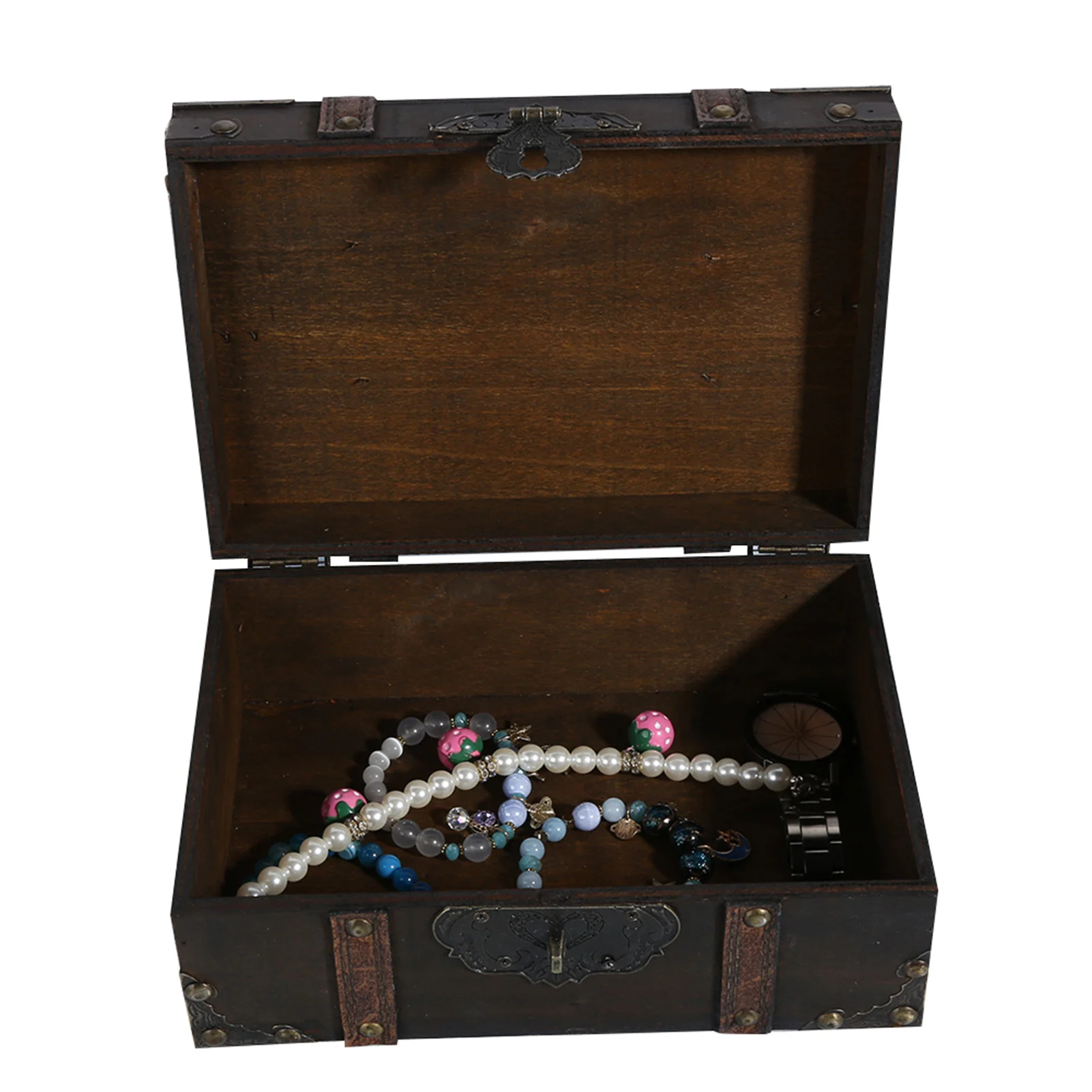 Vintage Wooden Storage Box Decorative Treasure Jewelry Chest with Lock Home Decoration